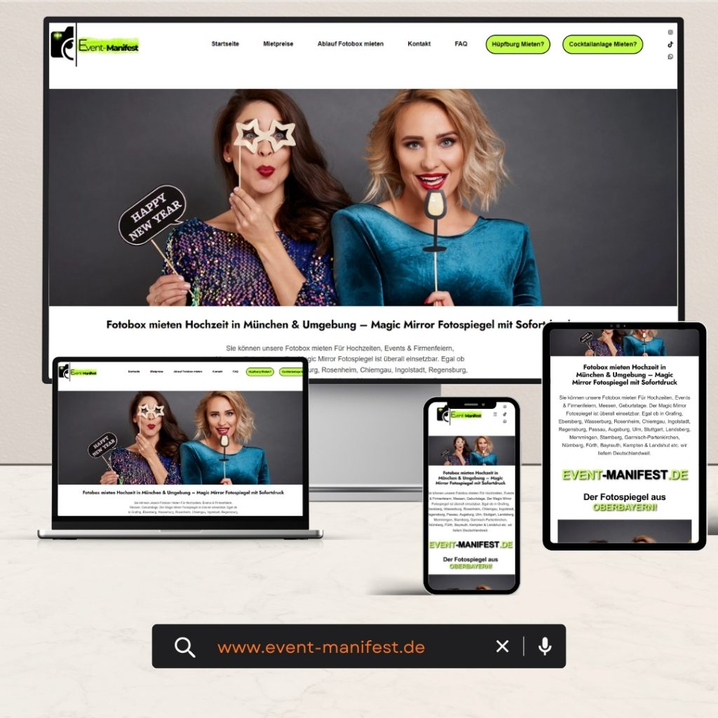 Moderne WordPress Webseite für Eventdienstleister mit klarer Struktur & Branding.